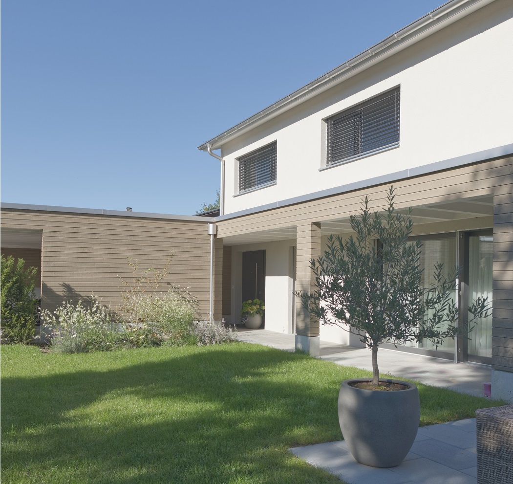 Die klare kubische Volumetrie wird durch den gemeinsamen Innenhof wahrgenommen.
